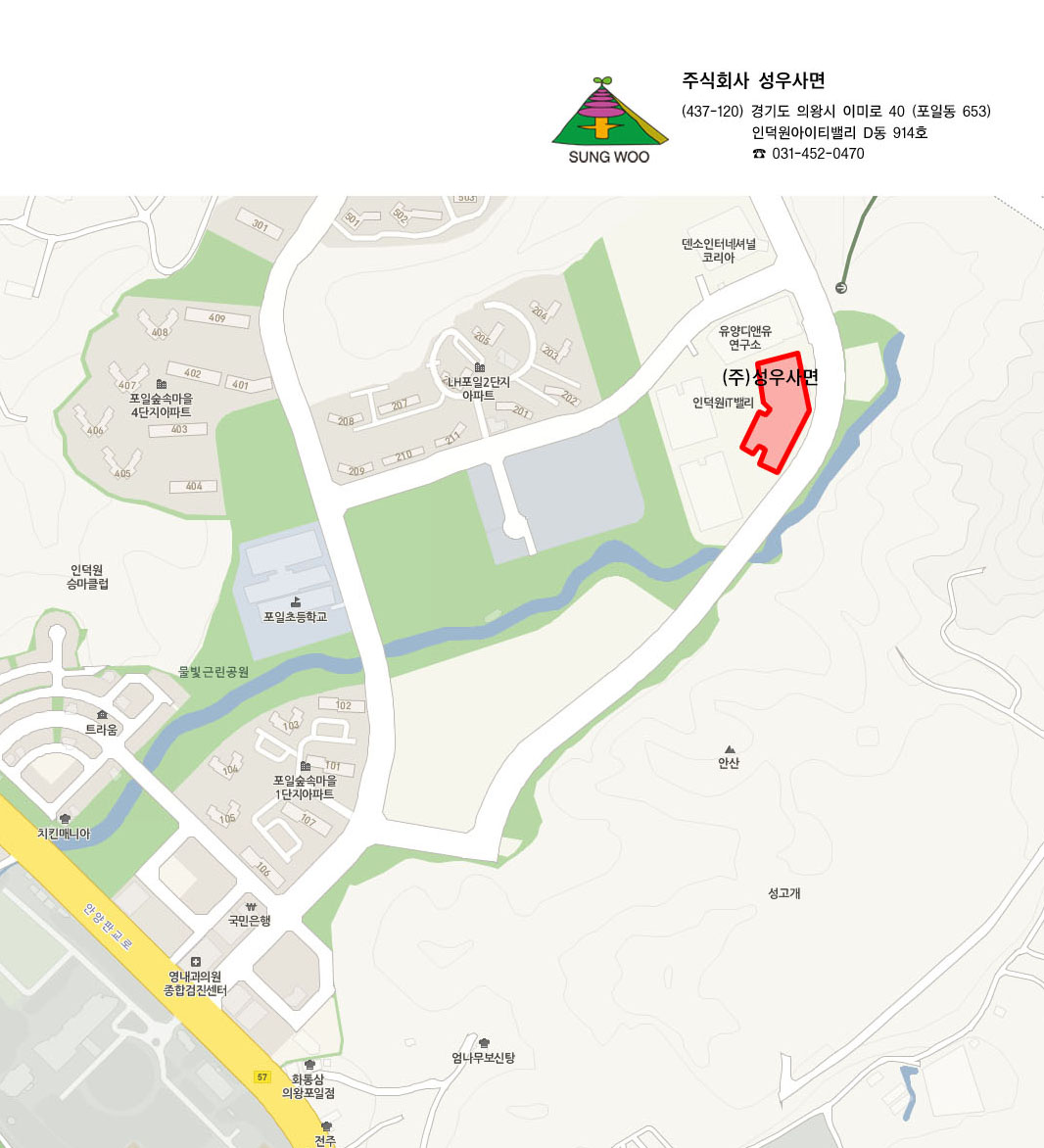 (주)성우사면 (437-120) 경기도 의왕시 이미로40 인덕원아이티밸리 D동 914호 | 대표전화 031-452-0470